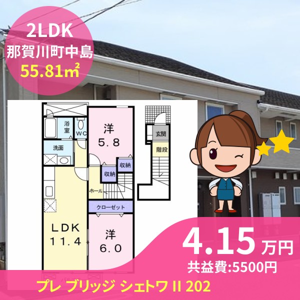 阿南市那賀川町中島のプレ ブリッジ シェトワ II 202をご紹介します