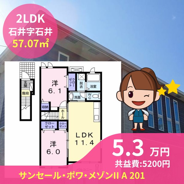 名西郡石井町石井石井のサンセール・ポワ・メゾンII A 201をご紹介します