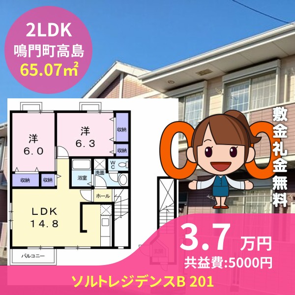 鳴門市鳴門町高島のソルトレジデンスB 201をご紹介します