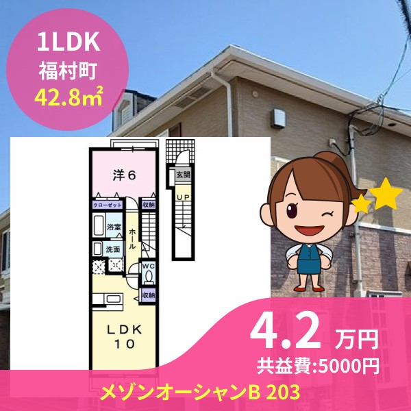 月額賃料は4.2万円で、共益費は5000円です