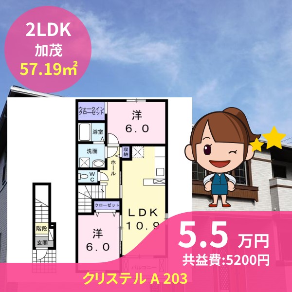 月額賃料は5.5万円で、共益費は5200円です
