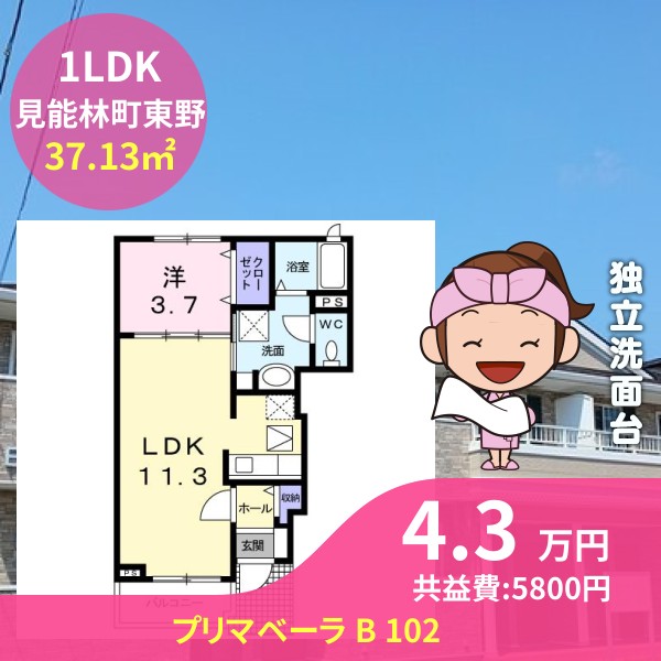 阿南市見能林町東野のプリマベーラ B 102をご紹介します