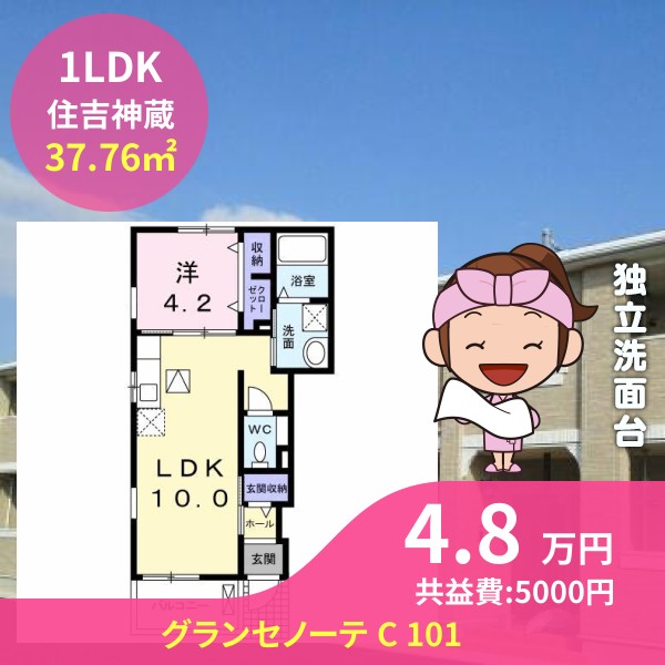 女性に特に喜ばれる独立洗面台のあるお部屋です