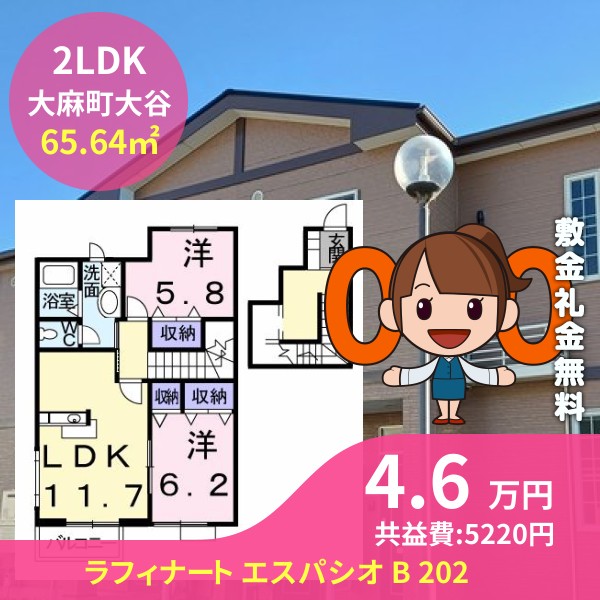 鳴門市大麻町大谷のラフィナート エスパシオ B 202をご紹介します