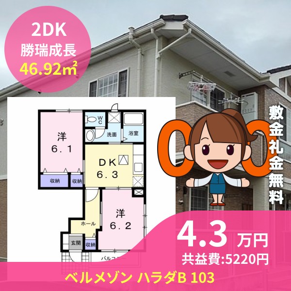 板野郡藍住町勝瑞成長のベルメゾン ハラダB 103をご紹介します