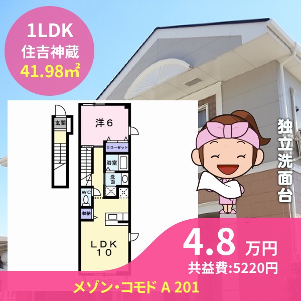 板野郡藍住町住吉神蔵のメゾン・コモド A 201をご紹介します