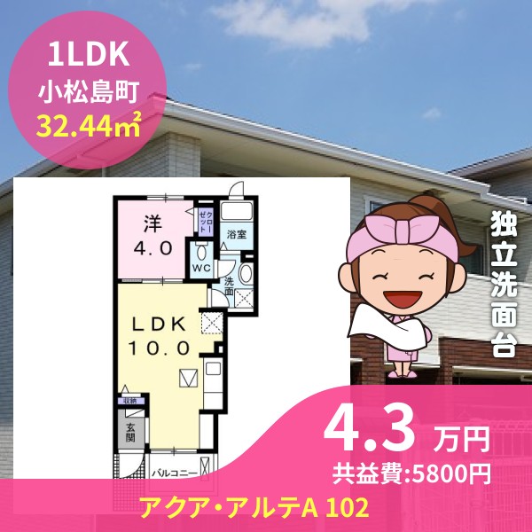 小松島市小松島町のアクア・アルテA 102をご紹介します