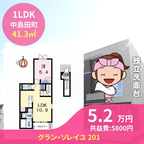 月額賃料は5.2万円で、共益費は5800円です