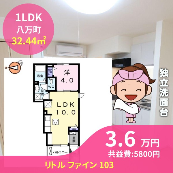 女性に特に喜ばれる独立洗面台のあるお部屋です
