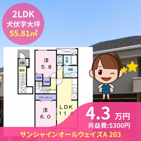 板野郡板野町犬伏のサンシャインオールウェイズA 203をご紹介します