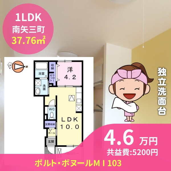 間取りは1LDKで37.76㎡の広さです