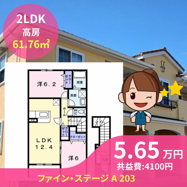 間取りは2LDKで61.76㎡の広さです
