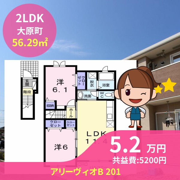 月額賃料は5.2万円で、共益費は5200円です