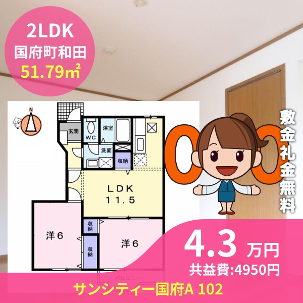 徳島市国府町和田のサンシティー国府A 102をご紹介します