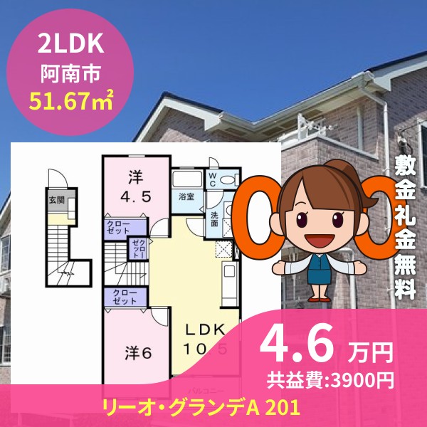 阿南市那賀川町北中島のリーオ・グランデA 201をご紹介します
