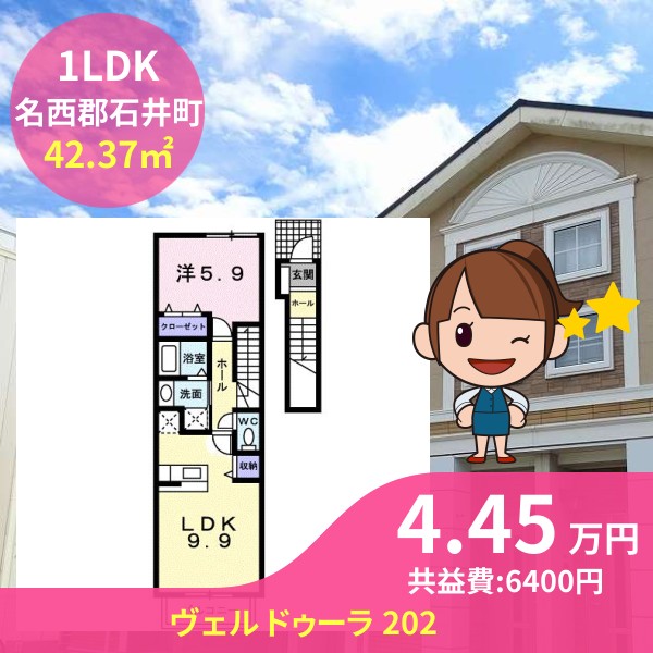 月額賃料は4.45万円で、共益費は6400円です