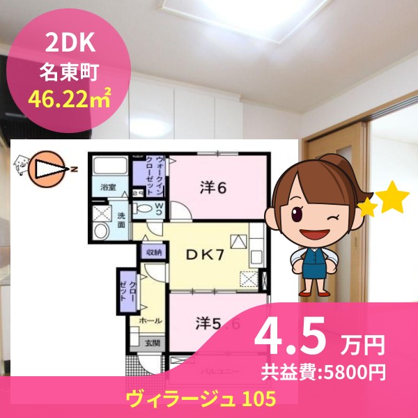 間取りは2DKで46.22㎡の広さです