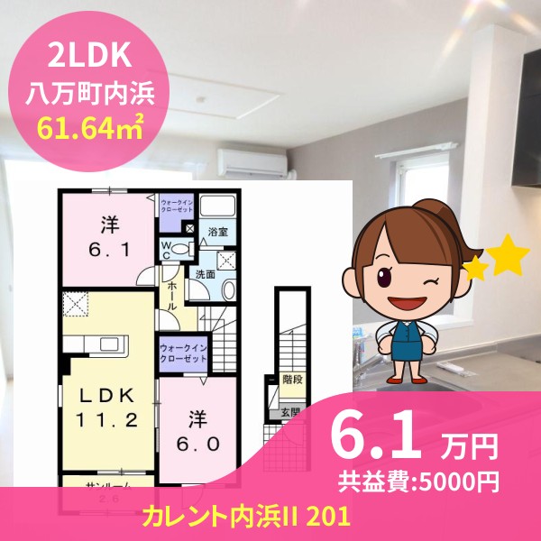 間取りは2LDKで61.64㎡の広さです