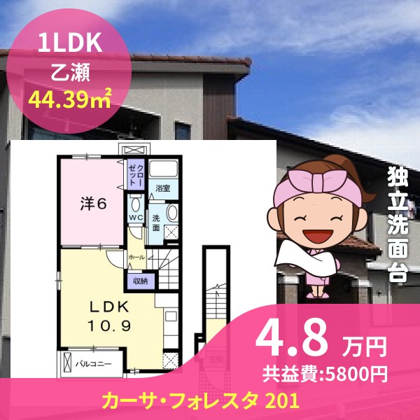 月額賃料は4.8万円で、共益費は5800円です