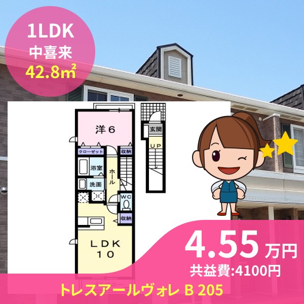 月額賃料は4.55万円で、共益費は4100円です