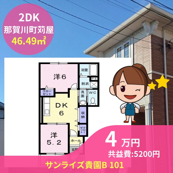 阿南市那賀川町苅屋のサンライズ貴園B 101をご紹介します