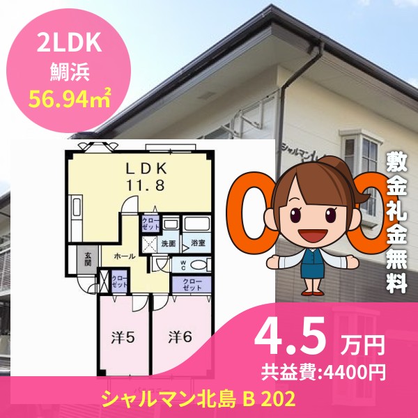 板野郡北島町鯛浜のシャルマン北島 B 202をご紹介します