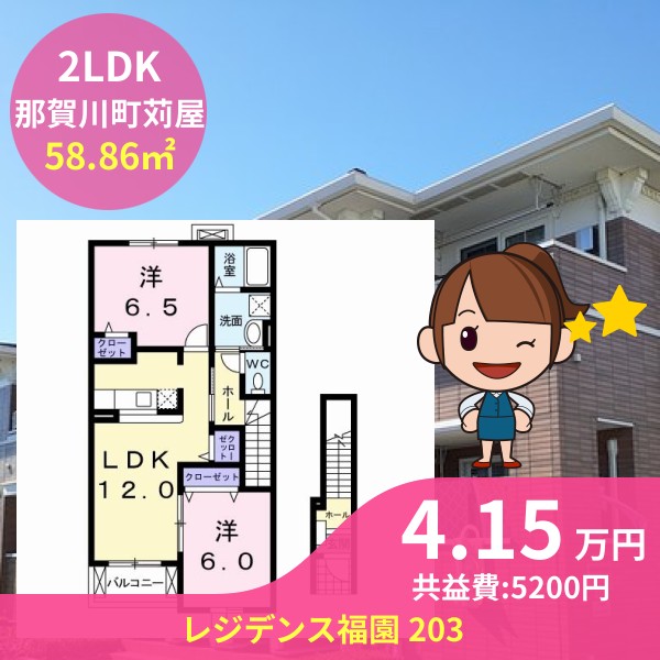 間取りは2LDKで58.86㎡の広さです