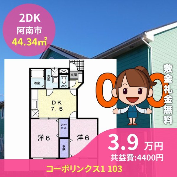阿南市那賀川町上福井のコーポリンクス1 103をご紹介します