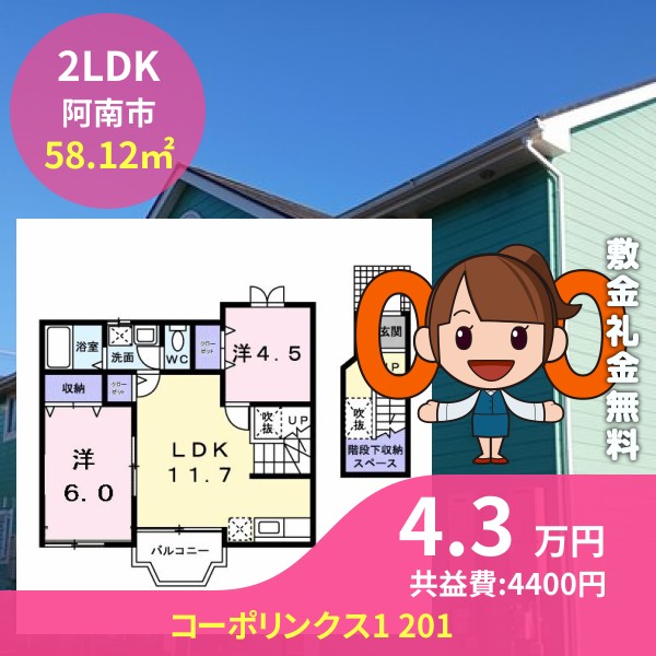阿南市那賀川町上福井のコーポリンクス1 201をご紹介します