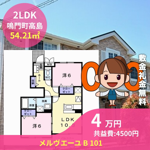 鳴門市鳴門町高島字南のメルヴエーユ B 101をご紹介します