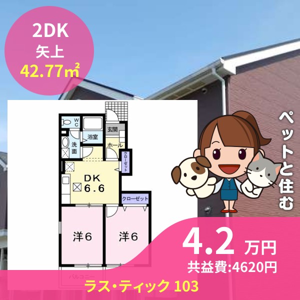 月額賃料は4.2万円で、共益費は4620円です