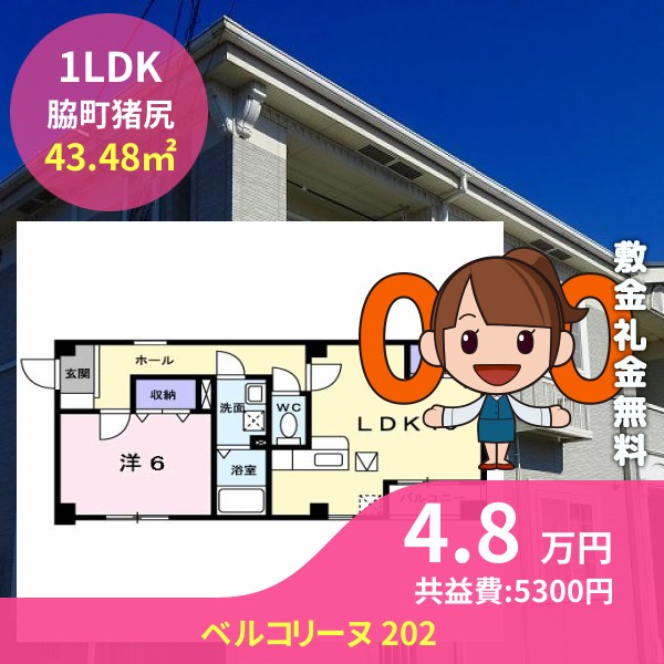 月額賃料は4.8万円で、共益費は5300円です