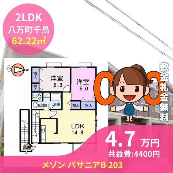徳島市八万町千鳥のメゾン パサニアB 203をご紹介します