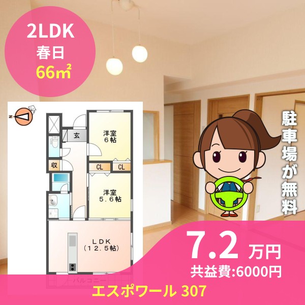 間取りは2LDKで66㎡の広さです