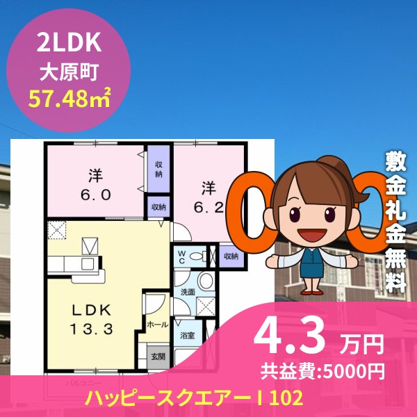 徳島市大原町のハッピースクエアー I 102をご紹介します
