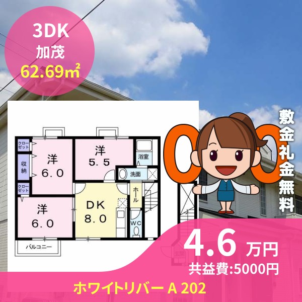 間取りは3DKで62.69㎡の広さです