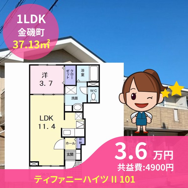 小松島市金磯町のティファニーハイツ II 101をご紹介します