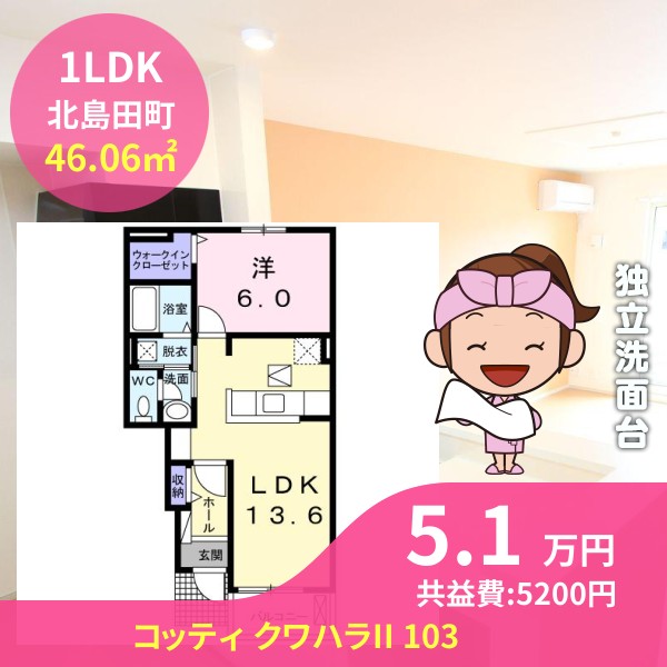 徳島市北島田町のコッティ クワハラII 103をご紹介します