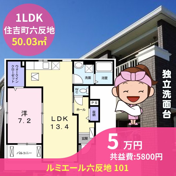 月額賃料は5万円で、共益費は5800円です