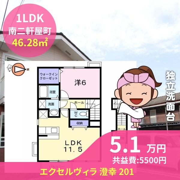 女性に特に喜ばれる独立洗面台のあるお部屋です