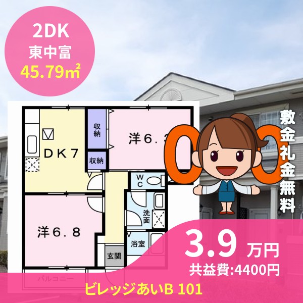 板野郡藍住町東中富のビレッジあいB 101をご紹介します