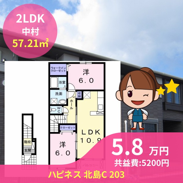 板野郡北島町中村のハピネス 北島C 203をご紹介します