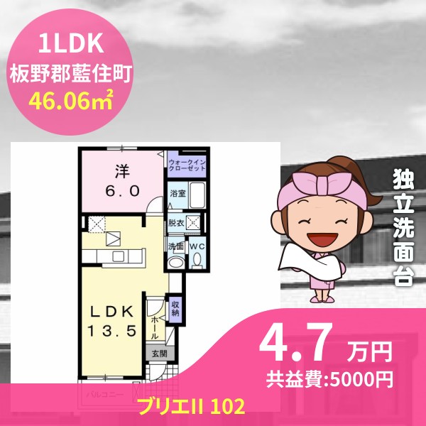 月額賃料は4.7万円で、共益費は5000円です