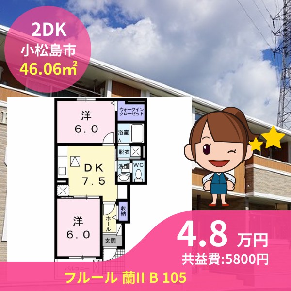 小松島市小松島町のフルール 蘭II B 105をご紹介します