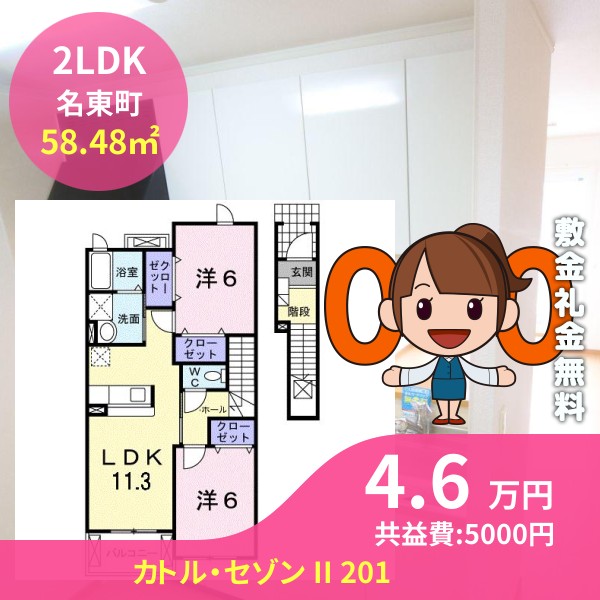 間取りは2LDKで58.48㎡の広さです