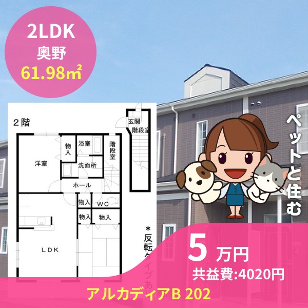 板野郡藍住町奥野矢上前のアルカディアB 202をご紹介します