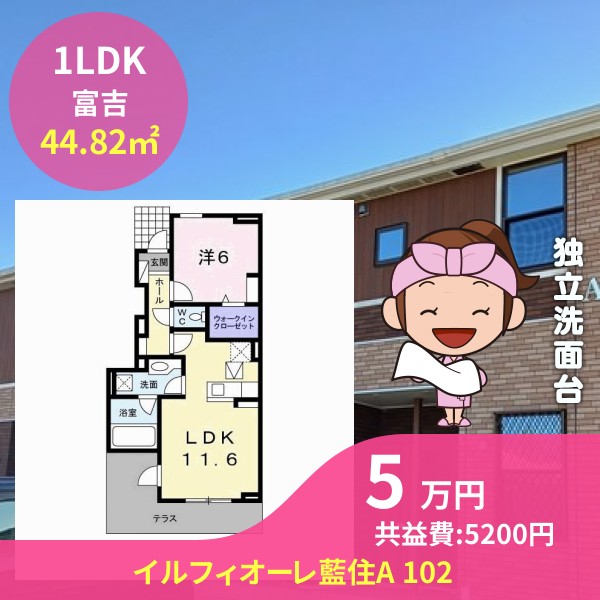 間取りは1LDKで44.82㎡の広さです