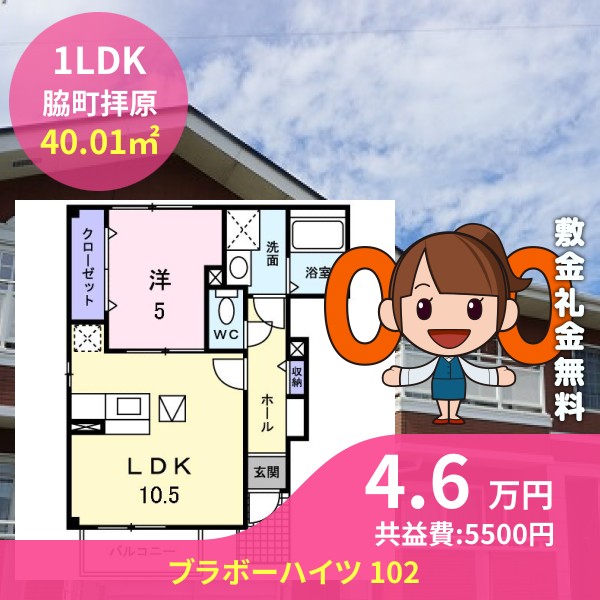月額賃料は4.6万円で、共益費は5500円です