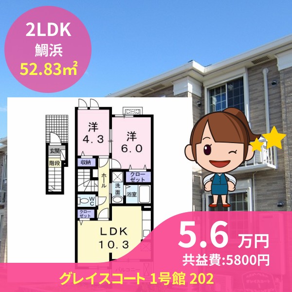 月額賃料は5.6万円で、共益費は5800円です