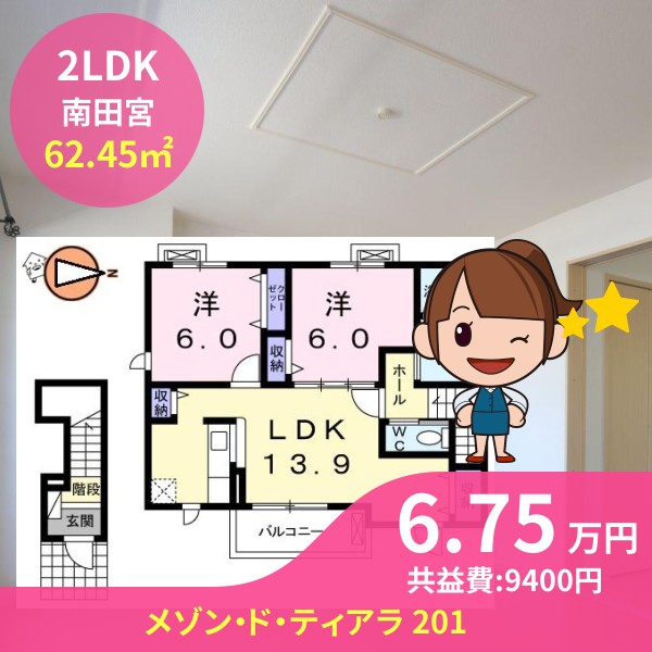 月額賃料は6.75万円で、共益費は9400円です